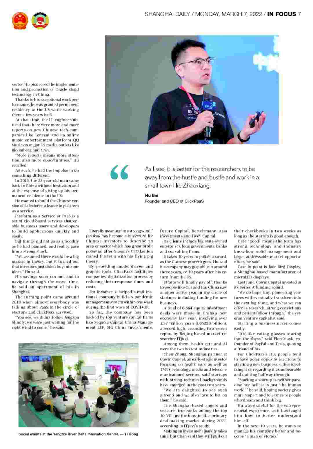 《上海日报》专访钱能钱包创始人、、、、CEO胡柏,,探究其创业背后的故事!!!!